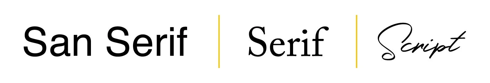 There are different styles of fonts (ex: San Serif, Serif, Slab Serif, Script). We use a san serif font as our primary typeface and have two alternative typefaces. We consistently use these fonts for all of our marketing & promotions.