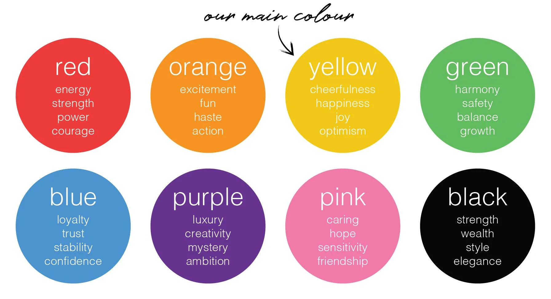 Colour - We are consistently conscious of how colour psychology can affect people's perceptions and behaviours. That is why yellow was chosen as our main brand colour; it is creative, positive, cheerful and warm--the exact emotion we want clients to feel when they work with us! Keep your target market in mind and how you want them to feel when they see your brand.
